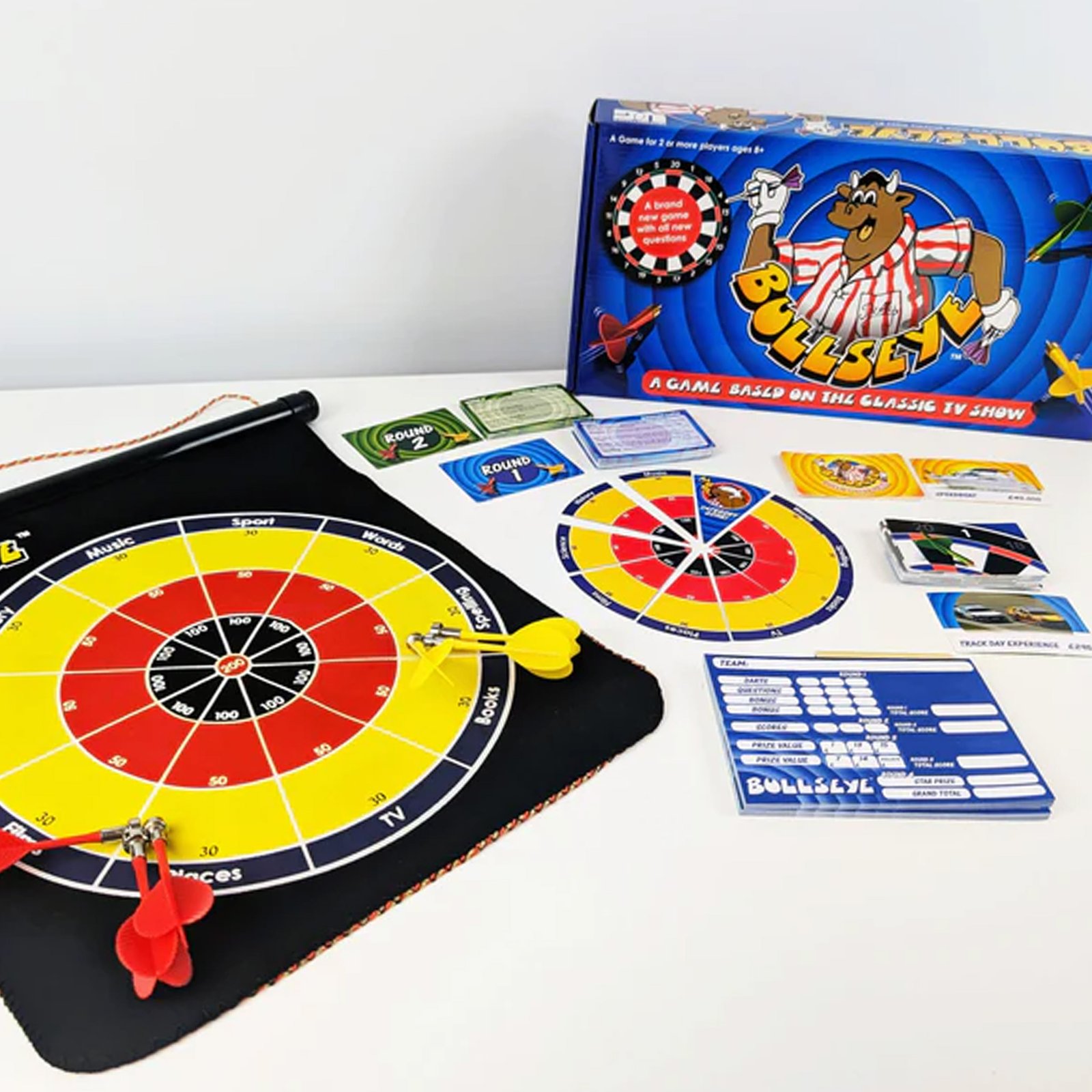 Step right up to this thrilling board game adaptation of the beloved classic TV show Bullseye! Will you be the dart player or will you be answering the questions in this game based on television's classic darts quiz?