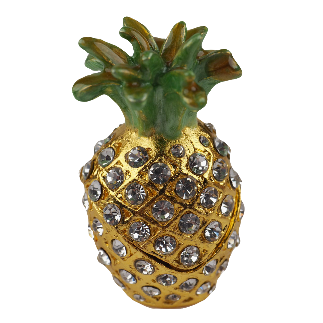 This delightful Crystal Gold Pineapple Trinket Box (LO24143) features an elegant design with a luxurious gold finish, perfect for adding a touch of sophistication to any decor. This functional storage piece includes a hidden compartment, ideal for keeping small treasures securely stored.