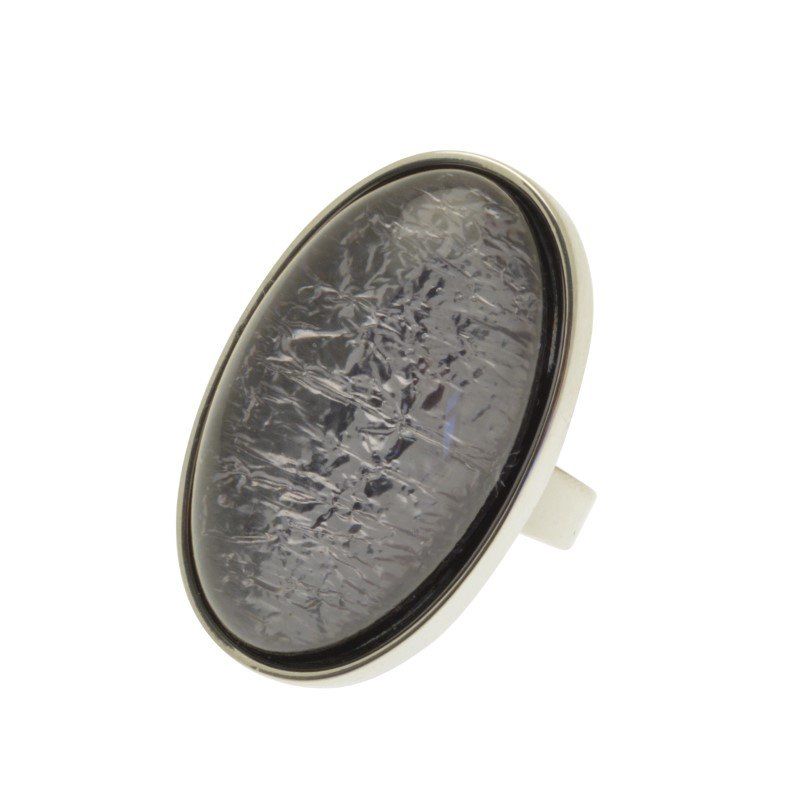 This stylish smoky grey statement ring is bold but not overpowering and has a real shine due to the foil backing to the resin. It will co-ordinate with other Miss Milly jewellery nad has an adjustable band. It measures approx 3.3cm long by 2cm wide.