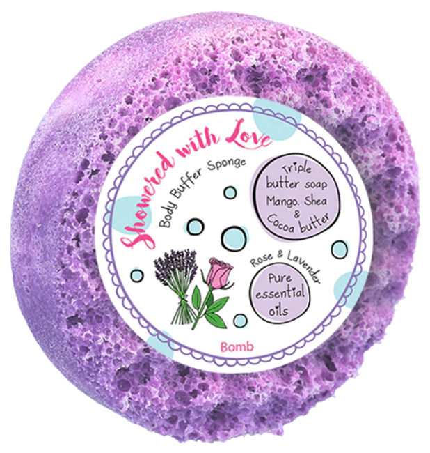 Does your skin need some extra TLC? This triple butter soap sponge is packed with pure Rose & Lavender essential oils as it gentle kisses your skin with the exfoliating sponge, to buff away any dead cells and leave you feeling showered with love.