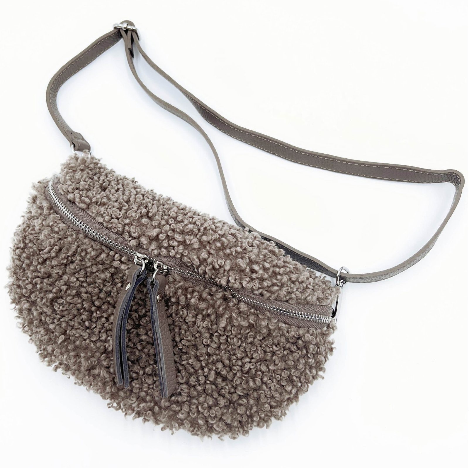 Taupe – 2271 Italian Real Leather Teddy Crossbody Sling Bag Waist Bum Bag
